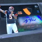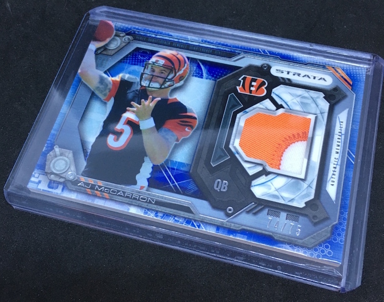 Why it’s Buzz-worthy: This guy is the new back-up QB for the Atlanta Falcons and he's dirt cheap since ultimately his NFL career has been of the clip-board variety save for a stretch in Cincinnati one year when Andy Dalton got hurt. That's OK as I'm buying due to him fitting the school ties part of my collection, not for big potential. I did land a good number of the premium patch cards and books here all in one small collection late last fall while adding others I liked in the last year or so. I particularly liked the Raiders promo set auto here (might be his only ink for that team or close to it) and the laundry tag card with the Bills, which is on the rarer side of things. The books are nice -- Bengals patch cards are always energetic -- while the lot includes a 1/1 and other rarer cards, too. I've said it before ... everybody should have a cheaper player to collect -- he's one of mine, though not always on a regular basis.