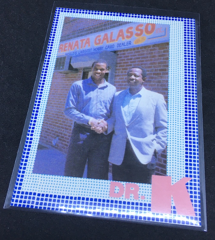 Why it’s Buzz-worthy: This pick-up was admittedly for the Aaron portion of the card but this one is interesting as it shows some oldschool card history. Renata Galasso was the maker of this card set, which was all about Gooden, and making card sets was an offshoot of years of successfully selling card sets as a mail-order dealer. That's the front of the Renata Galasso offices behind Gooden and the Hall of Famer. Their business began in the 1970s building sets and selling them and then they made cards into the 1980s during some of the simpler days of licensing and then were around beyond that. Why were they there? Well, the back doesn't tell you -- it only presents Gooden's reaction.