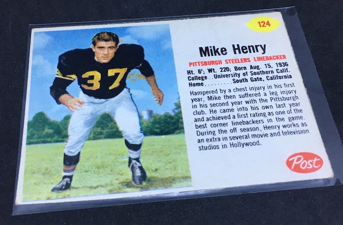 Why it’s Buzz-worthy: This is a card hand-cut from the back of a cereal box back in the day and it's that last line on the front of the card that is a big key here. Before he died in January at age 84, his career included a number of credits but perhaps his best-known role was as Junior Justice in three Smokey & The Bandit movies as the son of Buford T. Justice, the sheriff chasing Bandit across the country to find him and the bride (Sally Field) who left Junior at the altar. Pops got all the good lines in the movie and you can see a sampling here. Henry played six years in the NFL for the Steelers and the Rams but never appeared on any standard football cards. This is the only thing close to it and the rest of his card-ish items are a Salada coin and two Coke caps ... that's it. I'd totally want a slabbed copy of a card like this -- prices and condition are all over the place, though, with these hand-cut cards.