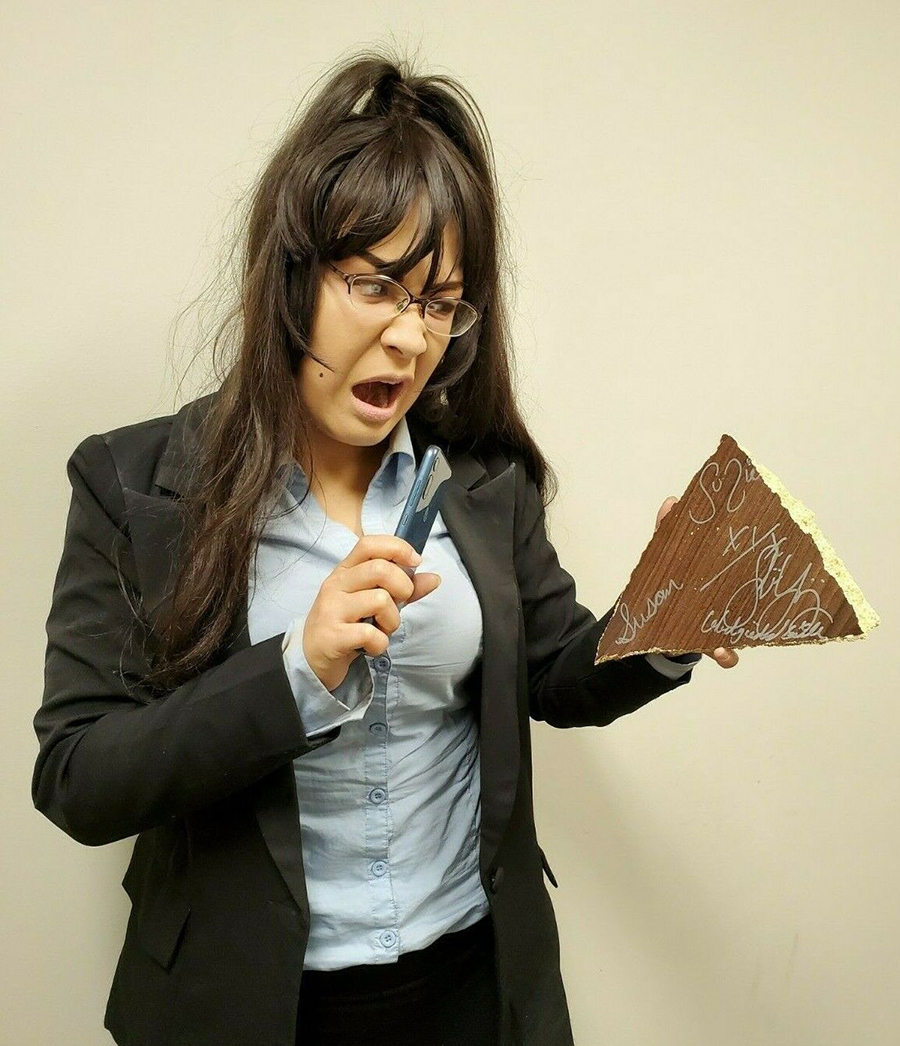 Why it’s Buzz-worthy: This is a fun piece to me -- and I contemplated telling its story as a quick Collecting Game-used post -- but instead it's here. My latest pick-up from the Impact Wrestling realm is the piece you see Susan holding above -- that exact piece of a table from ringside action. It's signed by Susan, The Undead Bride Su Yung and Susie -- the three personas brought to life by Vannarah Riggs, who has been Su Yung much of her career in the indies and now in Impact. The trio of characters couldn't be more different and it's all been entertaining to me as I've mentioned before here. How did I land this? Simple ... Impact has an eBay account and on a whim I contacted them and asked if they had that exact piece she was holding. They did ... so that's the one I got. Now, did I neeeeeed a signed piece of table? Perhaps not -- I have some other Su Yung/Susie stuff you haven't yet seen here -- but a photo-matched signed piece of table made this a classic addition.