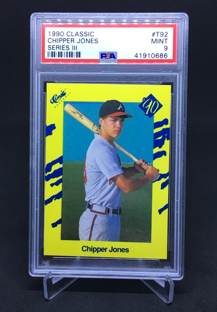 The Card: Chipper Jones 1990 Classic Update Yellow Travel Edition #T92 (PSA 9)