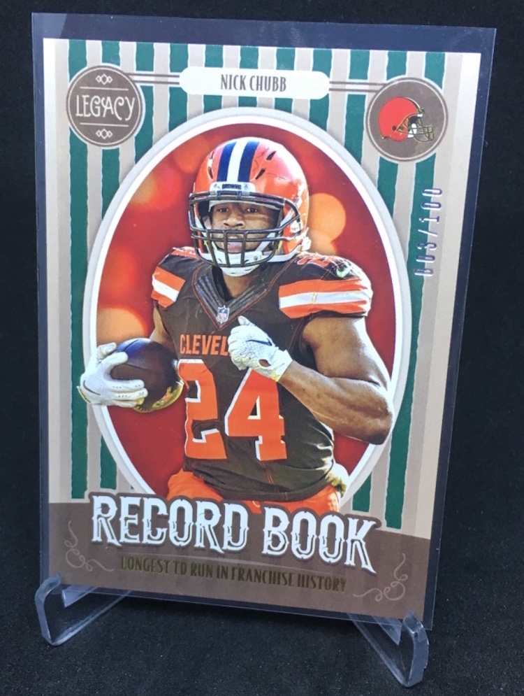 The Card: Nick Chubb 2019 Panini Legacy Record Book Green parallel (/100)