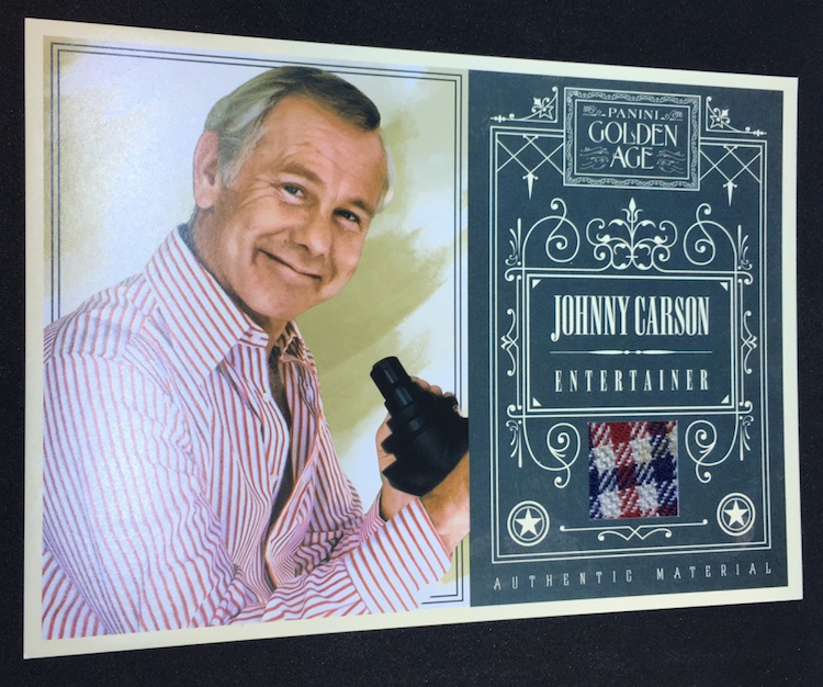 The Card: Johnny Carson 2014 Panini Golden Age 5-by-7 Box Toppers Memorabilia (/50)