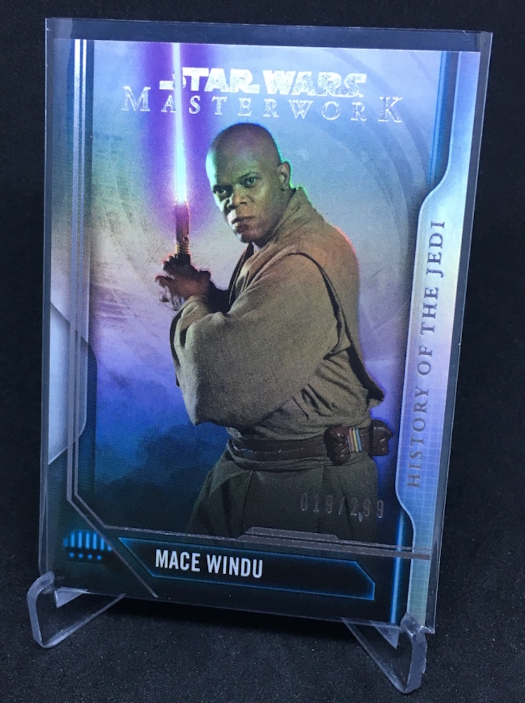 The Card: Mace Windu 2018 Topps Star Wars Masterwork History of the Jedi Rainbow Foil (/299)