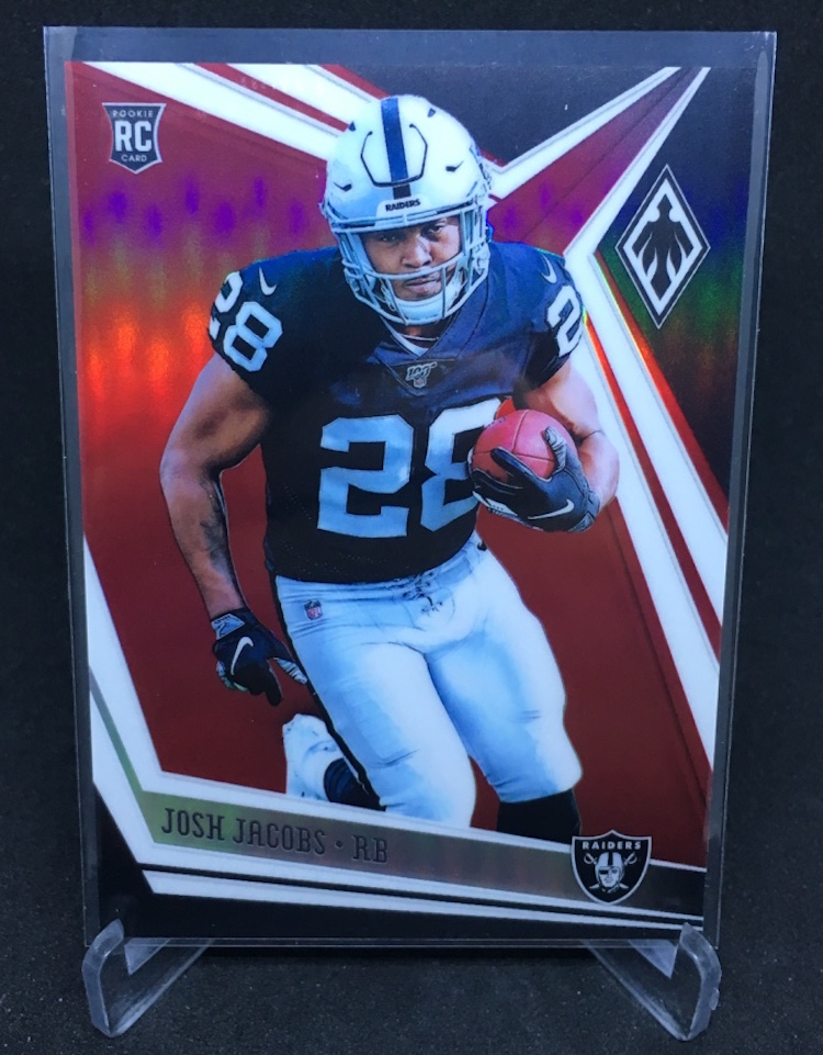 The Card: Josh Jacobs 2019 Panini Phoenix Red (/299) Rookie Card parallel