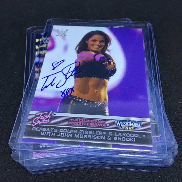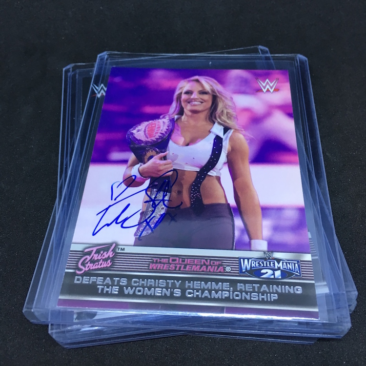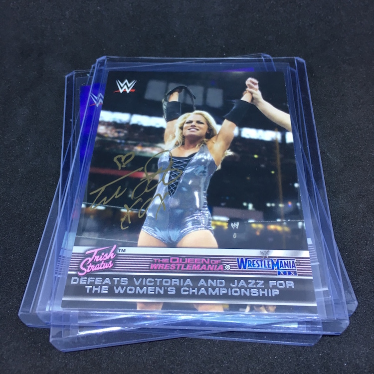 The Set: Trish Stratus signed 2014 Topps WWE Road to WrestleMania Queen of WrestleMania set (eight cards)
