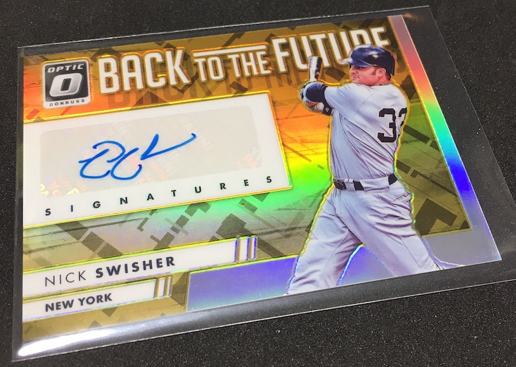 The Card: Nick Swisher 2016 Donruss Optic Back To The Future Signatures Gold (/5)