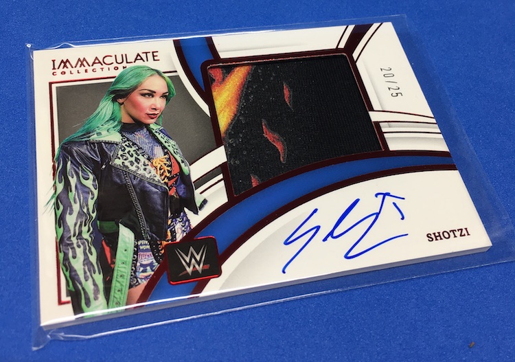 The Cards: Shotzi Blackheart 2022 Panini Immaculate Collection WWE Premium auto-mem (/99) & Red parallel (/25)