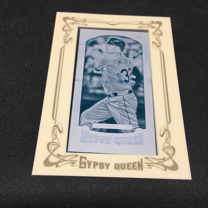 The Cards: Nick Swisher 2014 Topps Gypsy Queen, 2009 Topps 206 and 2013 Allen & Ginter 1/1 printing plates