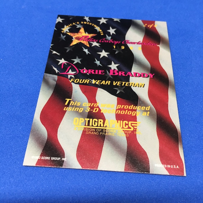 Why it’s Buzz-worthy: Somebody I know went thrift-store shopping awhile back and found a cache of oddball cards -- mostly the same old 1980s/1990s stuff that you see all the time and in volume -- but this one popped out like a sore thumb because a quick search showed that every one of these sets included an autographed card inside. For the price, I told them to grab it and it did include the ink all these years later. The auto was from Gigi Pittman, while the one-per box Optigraphics (think Sportflics) insert was Dorie Braddy. The DCC has plenty of documented history out there between its alumni and newer squads -- and this wasn't their first card set -- but this you don't see everyday. A couple of other names here included Jill Marie Jones who is an award-winning actress with a number of TV and film credits and Michelle Parma who was on the third season of MTV's Road Rules reality show. The box here was substantially faded but everything else inside was crisp and clean. Pretty good for the price.