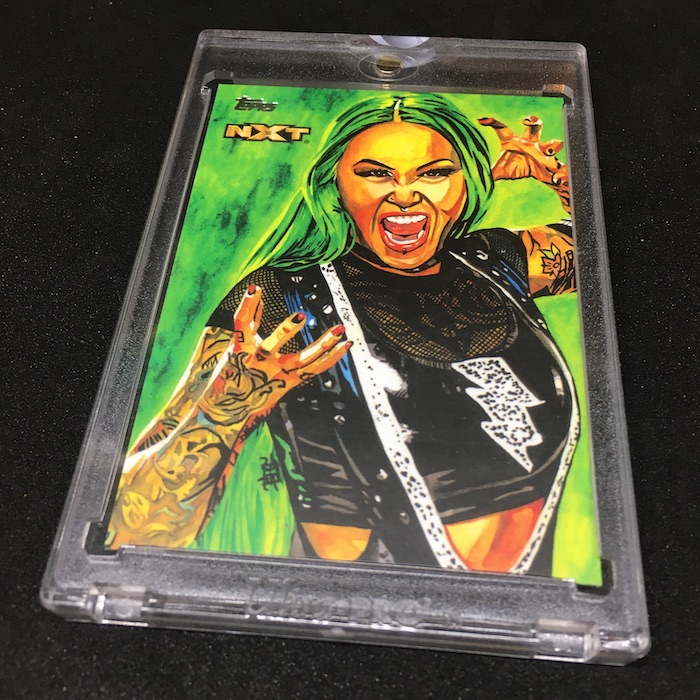 Why it’s Buzz-worthy: This pair of pieces showcasing a creation from the WWE artist -- a piece I own in original form as seen here -- were cool pick-ups last year but I have let a lot of my heavy WWE buying pile up to spread out here. (Why? Just so it's as heavy here ... even though it is. I'm falling back to basics I like as wax elsewhere is getting too pricey for my taste and the typical return.) The Topps Vault card was my first 1/1 for her -- I don't chase a lot of her rarities as there are collectors with deeper pockets than me or a narrowed focus -- while the artist card is a nice simple take on a base card. There are artist and wrestler autos of these (both /10) that are rare and pricey so I haven't grabbed those ... yet. They're on a longer-term radar if they ever present themselves affordably.
