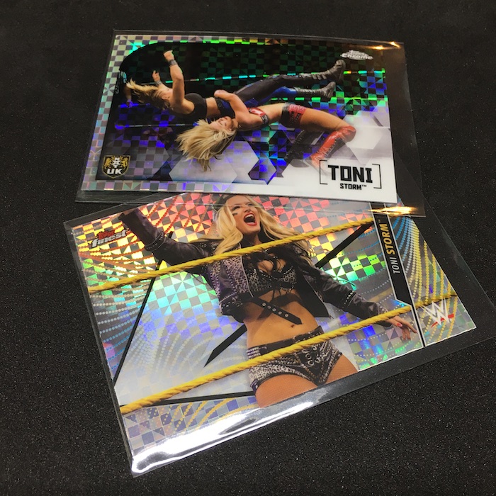 The Cards: Toni Storm assorted 2020-forward Topps Now, Topps Chrome/Finest Refractors, Slam Attax and Topps Relics