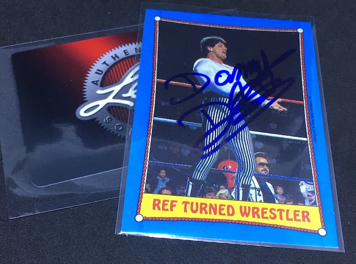 The Card: Danny Davis "Ref Turned Wrestler" autographed 1987 Topps WWF card (Leaf Authenticated)