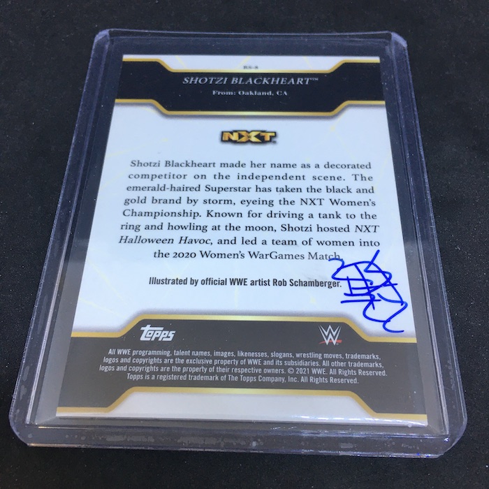 The Cards: Shotzi Blackheart 2021 Topps WWE Undisputed Rob Schamberger 1/1 Topps Vault proof and artist's autographed card