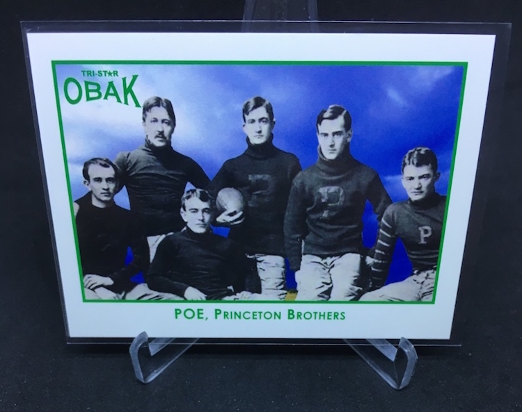 Why it’s Buzz-worthy: I broke away from the SEC for this Ivy League classic showing six Poe brothers who are related to the famed poet Edgar Allan Poe and who all played football for Princeton between 1882 and 1901. (The poet died in 1849.) Why? I don't know other than it was cheap and rare and it's a unique card from a unique set. I'm a total sucker for TRISTAR's Obak sets in both baseball and football because of all the odd things they included. Boxes of those are seemingly long gone thanks to their autographs, but the parallels are fun projects for those who like some history beyond just stats with their cardboard.