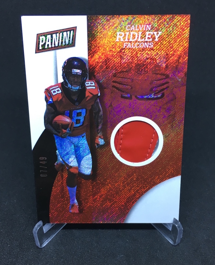 The Card: Calvin Ridley 2018 Panini National Convention Gloves Rapture parallel (/49)
