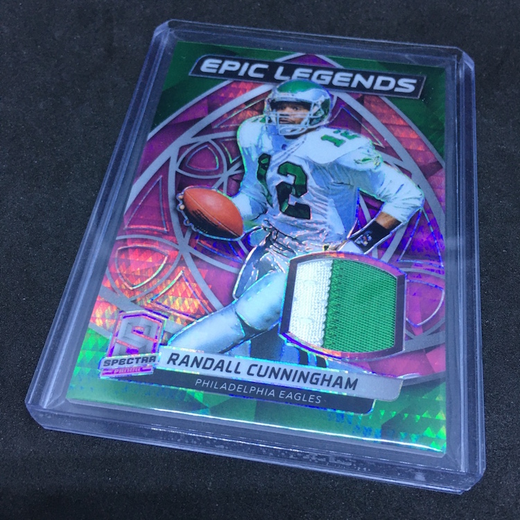 The Card: Randall Cunningham 2019 Panini Spectra Epic Legends Materials Neon Pink (/15)