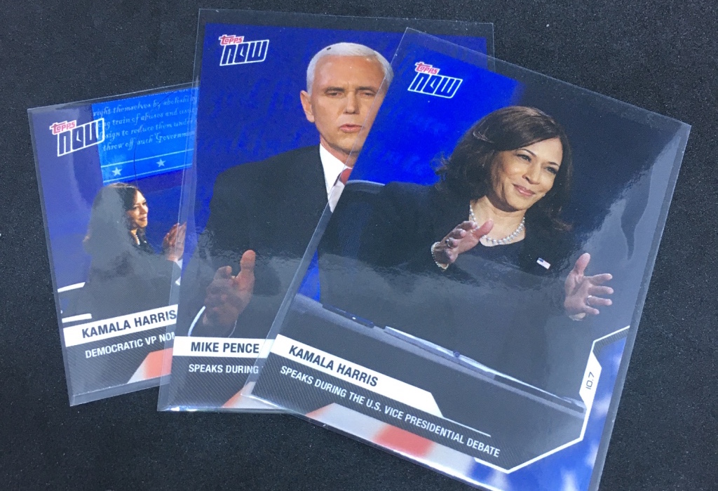 The Cards: Kamala Harris & Mike Pence 2020 USA Election Topps Now three-card bundle (/5,594 made for the fly card)