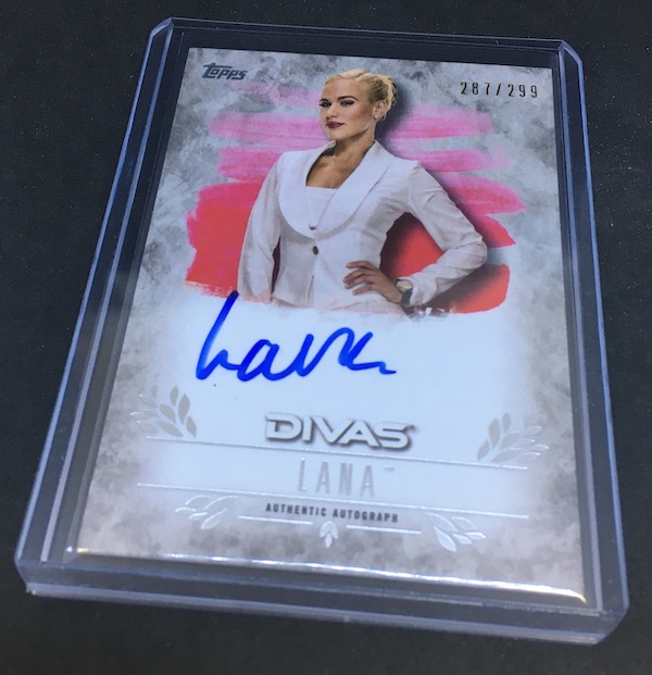 The Cards: Lana 2015 Topps WWE Undisputed Red (RC parallel), 2016 Topps WWE Undisputed Autographs (/299), 2015 Topps Chrome WWE Autographs, 2017 Topps Heritage WWE Silver (/25) & 2018 Topps WWE Women's Division Women's Royal Rumble Gold (/10)