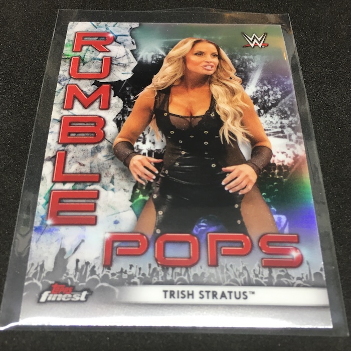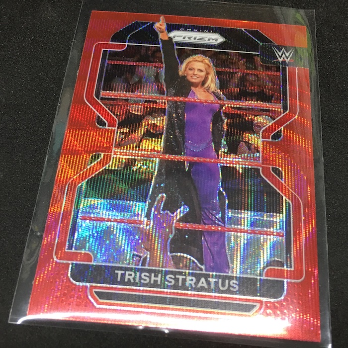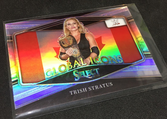 The Cards: Trish Stratus 2021 Topps Finest WWE Rumble Pops, 2022 Panini Prizm WWE Ruby Wave Prizm & 2022 Panini Select WWE Global Icons Silver Prizm