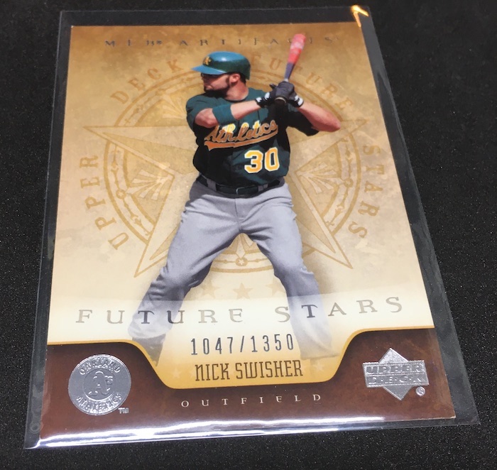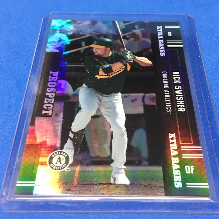 The Cards: Nick Swisher 2005 Upper Deck Artifacts Gold (/25) and base (/1,350) & 2005 Playoff Prestige Xtra Bases Purple (/100) and Black (/25)