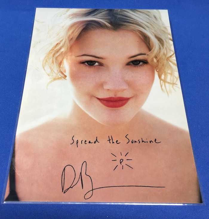 Why it’s Buzz-worthy: If you were collecting and on the Interwebs back in the mid/late 1990s and ever dabbled with through-the-mail autograph hunting and all those address lists that used to be out there -- or even the simpler the e-mail addresses that seemed to be attached to some names on those lists -- then you probably know what these are. Big names -- and a lot of not big names back then, too -- used what was called Studio Fan Mail and they'd send out pre-printed postcards like these and sometimes dozens of names at a time. I remember landing big envelopes loaded with them a couple times and I knew what they were -- not legit -- but they were interesting in their various images, styles and how the pre-printed autos were done using spot inks that made them look slightly "sort of" real at a glance ... until you saw them side by side. But it was also the kind of (in my mind back then) non-valuable junk that I didn't keep. I didn't ponder them being card-like collectibles that would come and go with time and Barrymore here is an example. This is just three styles used for her -- and the one on the right was actually one I received back in the day. It was one I likely chucked with the rest when I moved (more than once). Why? They weren't sports and they weren't real autos and I was out of space. I found these recently and on a whim grabbed all four sets that a seller had since I figured that might be the best way to land better-condition copies. These were printed by a company called Tamkin Color, which actually made these from the 1960s and into 1990s. Just do an eBay search for that name and you should find an interesting mix of solo and cast images from the past -- and that way at least there's a good chance they aren't something fresh off some dude's printer.