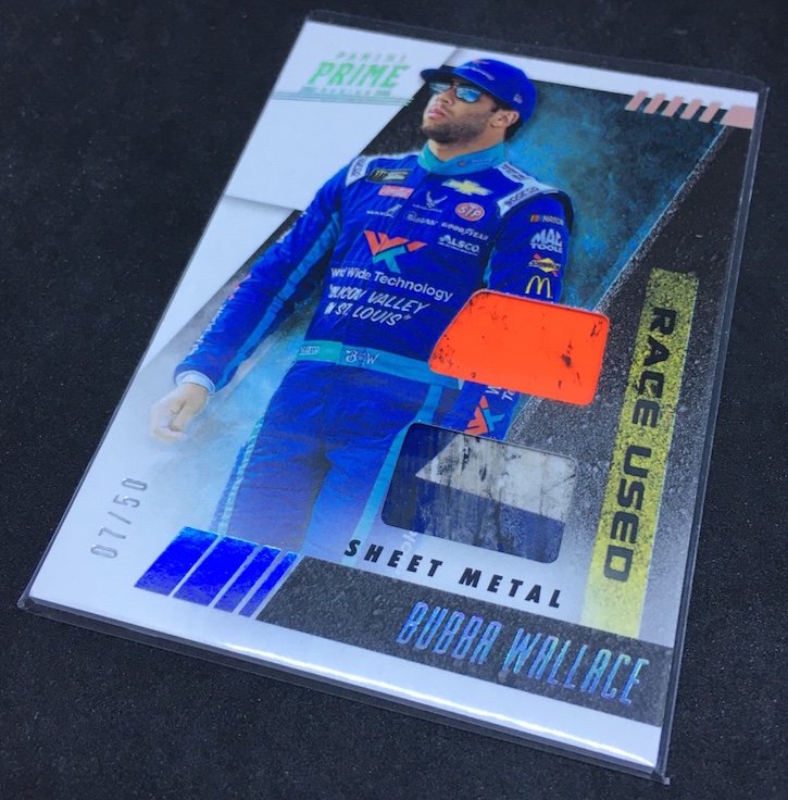 The Card: Bubba Wallace 2019 Panini Prime Race-Used Dual Sheet Metal (/50)