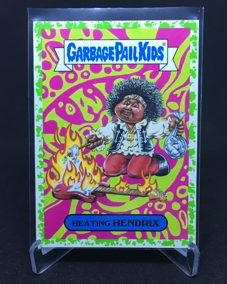 The Card: 2017 Topps Garbage Pail Kids Battle of the Bands Classic Rock Sticker Puke parallel Heating Hendrix