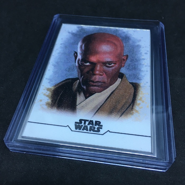 The Cards: Mace Windu (Samuel L. Jackson) 2019 Topps Star Wars Stellar Signatures Stellar Art Reproduction & 2020 Sketch Reprint (/100)