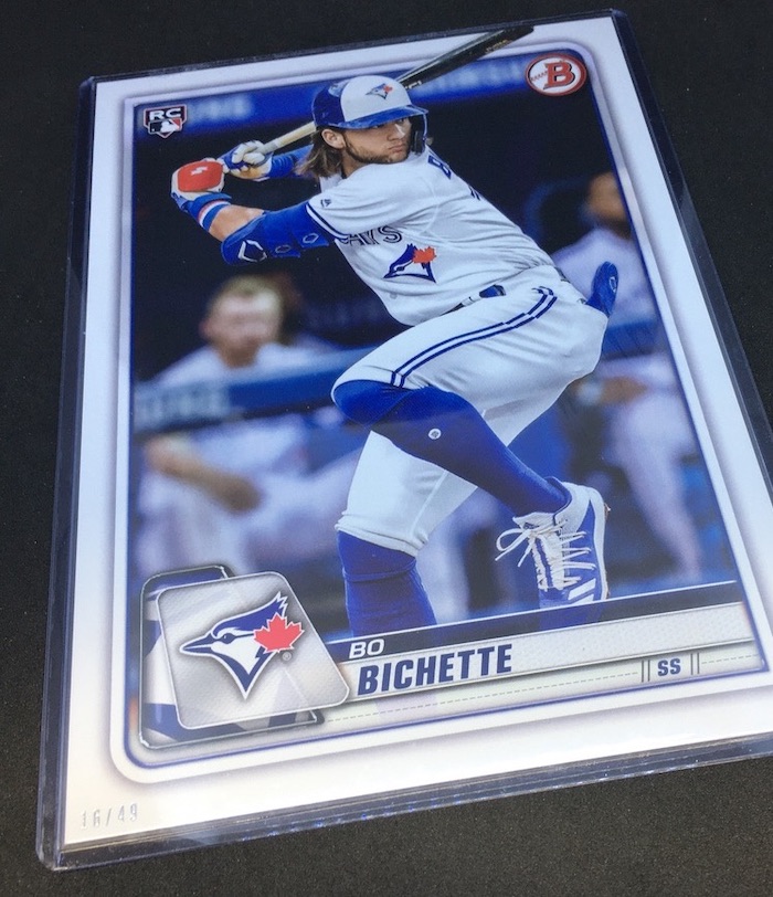 The Card: Bo Bichette 2020 Bowman 5-by-7 jumbo card (/49) -- Rookie Card parallel