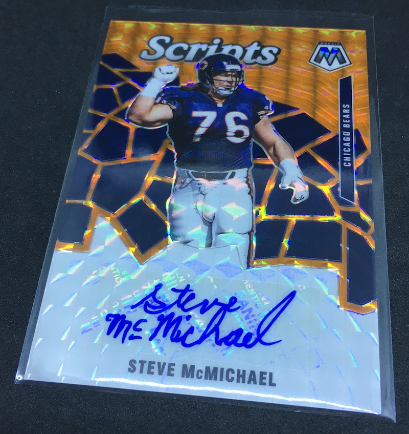 The Card: Steve McMichael 2020 Panini Mosaic Scripts Orange autograph