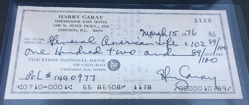Why it’s Buzz-worthy: This past insurance payment was one of a couple checks I grabbed last year. Why? The legendary broadcaster's autograph is pricey -- especially if you grab it authenticated or slabbed -- but not as expensive if you know where to look. My last one of these essentially pinpointed its signing to a West Coast road trip in a particular season from the past while this one looked to be a simple paying-the-bills situation ... complete with his policy number from 46 years ago.
