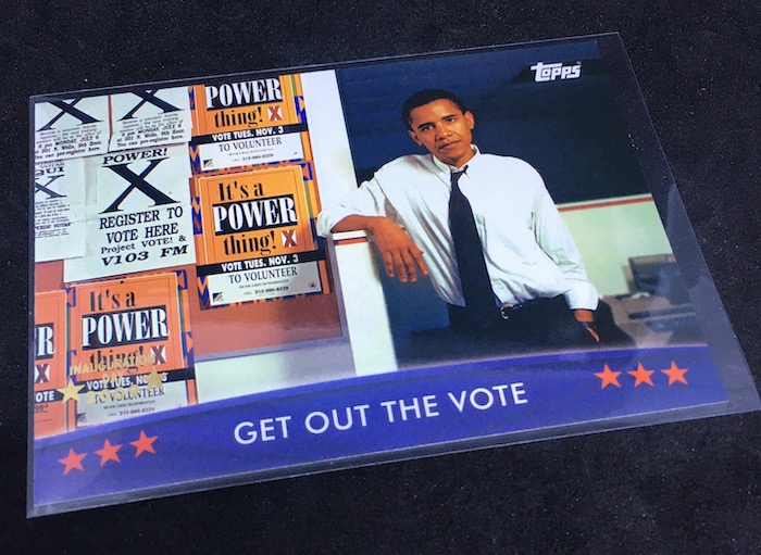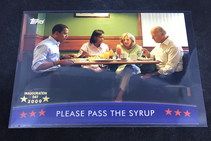 Why it’s Buzz-worthy: There's a ton of political cardboard out there I simply have no need for -- I've been tempted to dabble at times for the hits and odd inclusions but couldn't do it. But, while on a search out there I happened upon these cards that I didn't even realize existed. They are stamped versions of the Topps Obama cards that sold very well after he was first elected. I never really dabbled with the regular set -- I was busy working in other areas and collecting other realms near-exclusively -- so I didn't remember these at all. I grabbed two -- one more of a traditional behind-the-scenes power pose and one that's totally not that. The "please pass the syrup card" is something of an off-brand moment that might make more political sets more appealing if they happened more regularly. (And the cameos there add some interest to that particular card, too.) Prices on unopened boxes of this one over on eBay are a bit surprising these days -- $100 and $140 for hobby/24-pack boxes -- while blasters are still pretty cheap. Meanwhile, asking prices on high-grade cards for Obama in general can be pretty strong. There could be some money to be made grabbing a box and getting some of the more-memorable cards graded.
