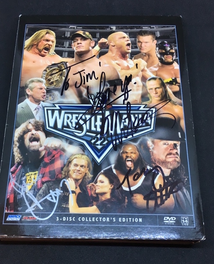 The Card: Tony Atlas, "Mean" Gene Okerlund and Torrie Wilson autographed WrestleMania 22 DVD set