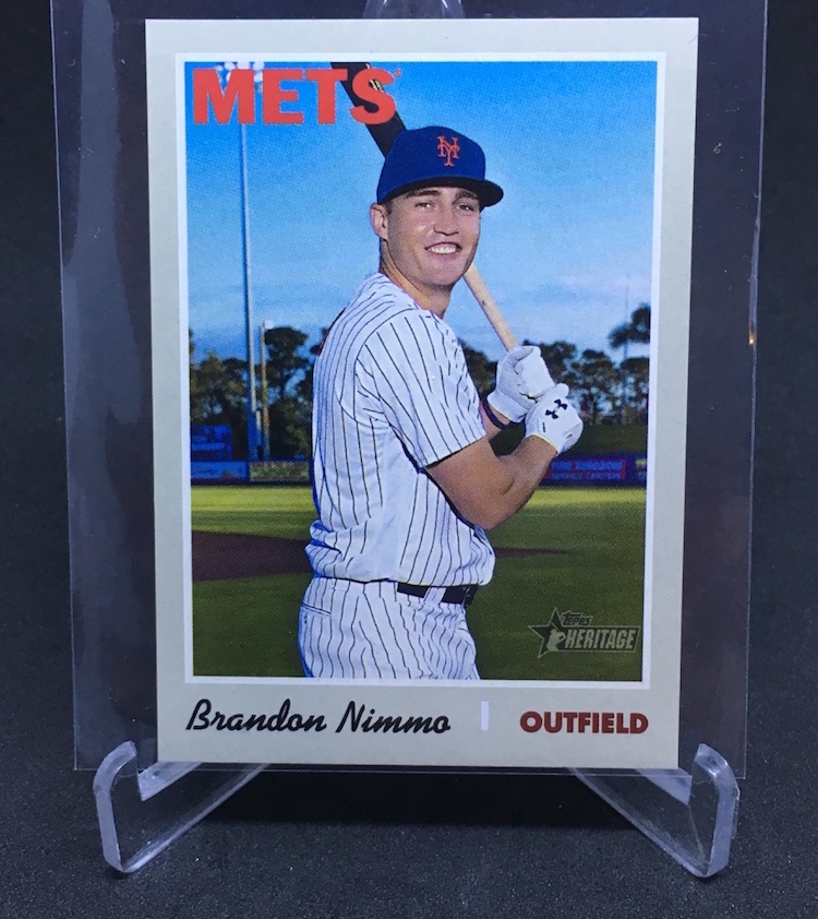 The Card: Brandon Nimmo 2019 Topps Heritage Mini parallel (/100)