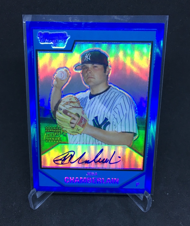 The Card: Joba Chamberlain 2007 Bowman Chrome Prospect Autographs Blue Refractor (/150)