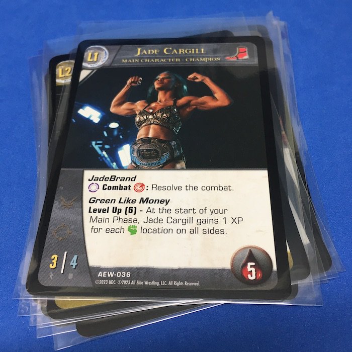 What's Buzz-worthy: The formal name here is "Vs. System 2PCG: AEW" but since I wanted non-gamers like me to see something and understand it I went with a less-coded title up top for a game that, well, was off my radar for some time before I spotted it. This was made in 2023 and I spotted it earlier this year and picked one off for an OK price given the card volume here. You get 200 cards in this one with only 70 different (and I assume the mix is the same each time) in the. There are 55 wrestler cards and the rest are the other subsets mentioned that are key for gameplay. For those names considered "main" you only get one copy of a couple different cards here (making them SPs in comparison) while you get four copies apiece for the others. Other subsets yield between one and eight copies per card. Buzz isn't a gamer but I have seen these same style decks for Marvel and other properties and this one, to me, is about a few names and perhaps some oddball grading. (That's my motivation to open here ... a few names I like.) "Rookie Cards" aren't in play with this since it's gaming but that's not a big deal as a number of the better names who are technically 2023 RCs in the standard AEW set aren't here -- so this was probably prepped a little earlier in the timeline than the regular stuff or perhaps not as updated if there were production delays. There are some strong images here within those heavy gaming frames so those cards pop a little more than the ones who have distant images at a small size, but there's a good mix of stuff, though it's lighter on the women's side of the stars than it should be. All in all, this is one I'll do once for some speculative (just for fun) slabbing or maybe once more if I find it at a slasher price and really want to grade one of those rarer-seeded cards more than time. Why? Stuff like this has a chance to be rarer in the long-term than the regular cards, though the demand probably won't be as high. You never know though over time and with collecting trends and tastes ... and some names here have been around AEW, WWE and other companies in the time since this arrived or are legends who have a lot of cards.