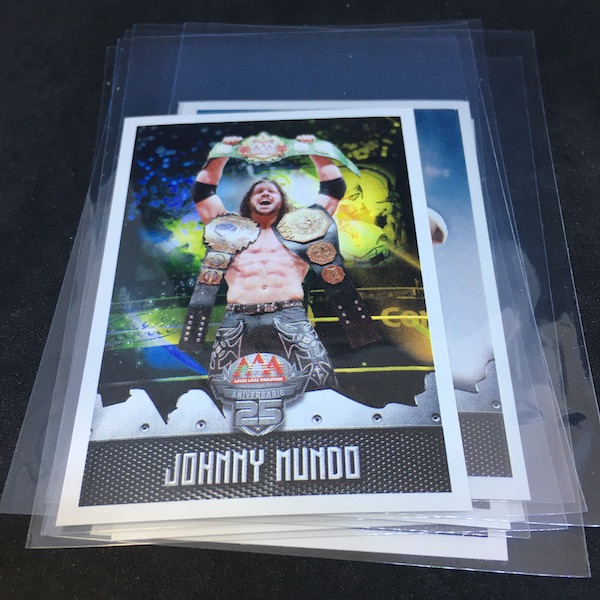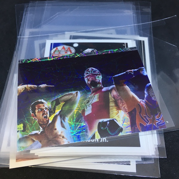 What's Buzz-worthy: Most BuzzMania lineups in my five-year history of doing this marathon have stuck to WWE releases or at least ones where WWE owns the intellectual property now, but with the Panini shift for WWE cards but them not being out yet I figured I'd dabble with some of their international releases. Panini has already produced WWE cards for other markets in the past -- within the last decade -- but those in pack form I didn't find. So I went this direction after seeing so many WWE (and NXT) names in the mix and stars you'll see on their American rivals' shows, too. Some of the names here might be "Rookie Cards" per se -- but they are stickers -- so it's better here to just say early appearances. I did very well with the smaller 2016 packs with three or four copies of some stars' stickers (and some had more than one) while the larger-size 2017s (25th anniversary logo) didn't cough up many extras for the notable names you'd know from WWE but did deliver pretty well for guys like Pentagon and Rey Mysterio. The Triplemania poster stickers -- look closely -- also offer even more star power among the tiny pics or names mentioned to help give the casuals like me who haven't seen much AAA but know the names from elsewhere a little more to chew on. I found these lots on the affordable side of things so I didn't mind the results here -- there are no chase elements other than foil stickers that are in the set -- but I might do another lot of the one if it strikes me. I even have one of the finds here in a future grading pile ... why? Well, earlier stickers -- just like early cards -- can make for interesting slabs.