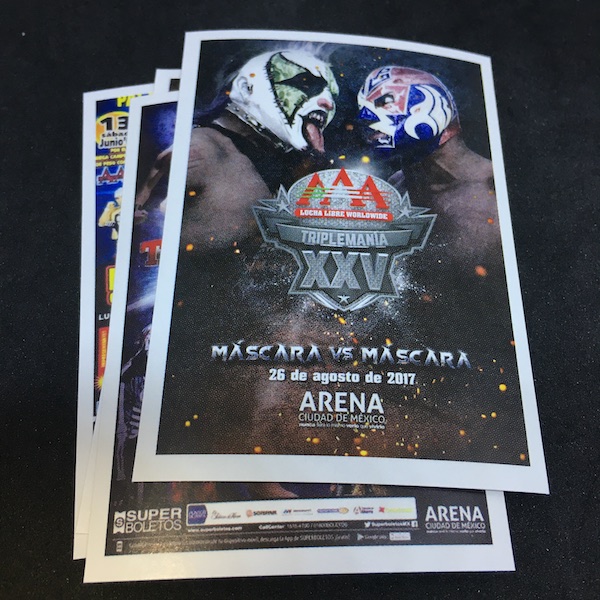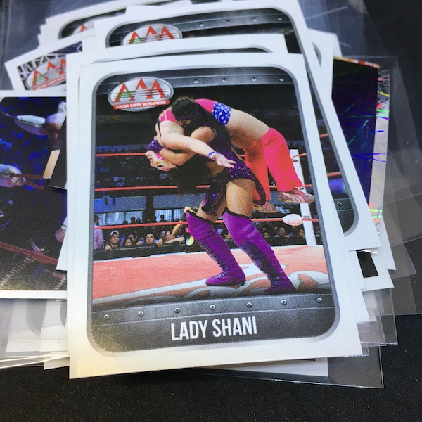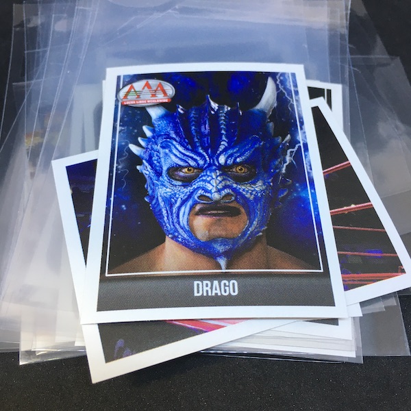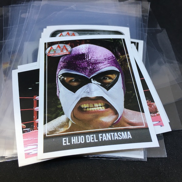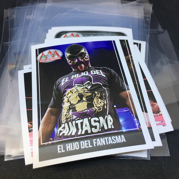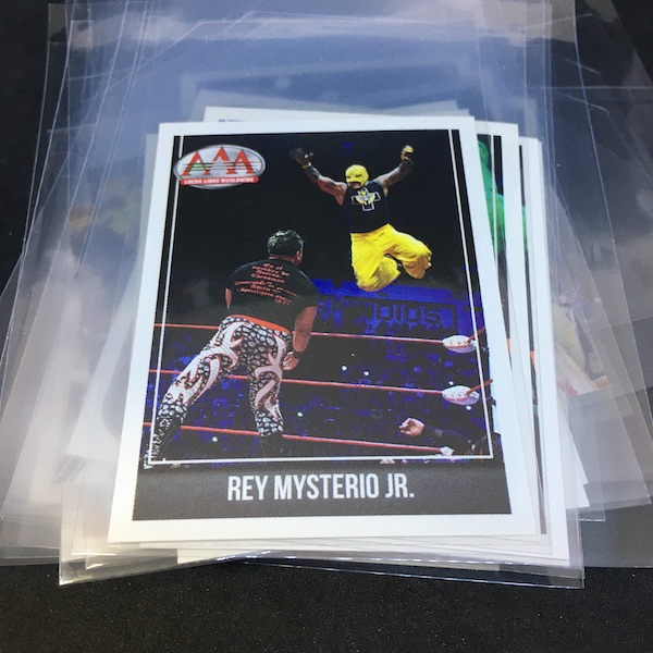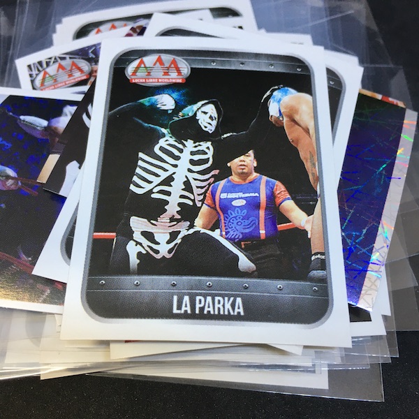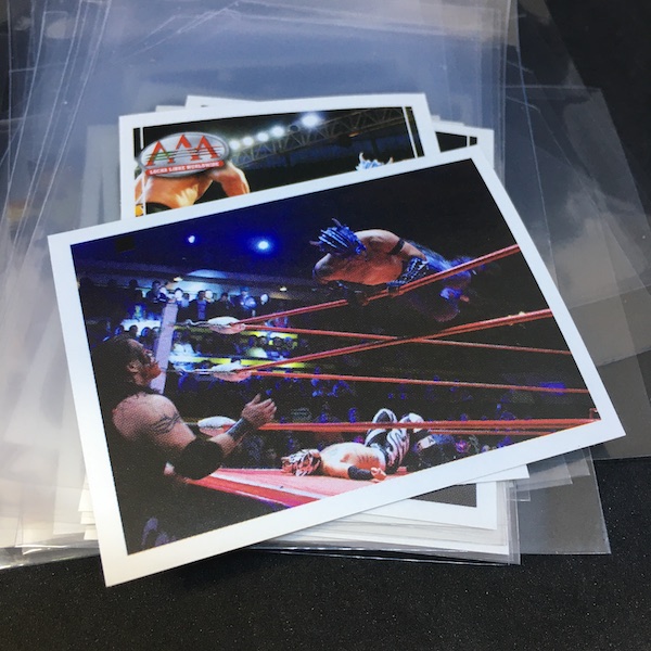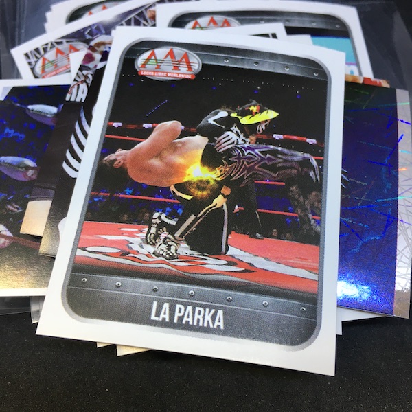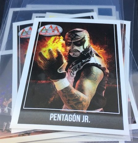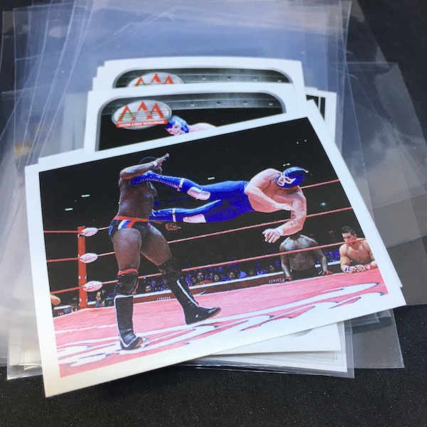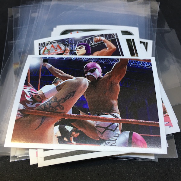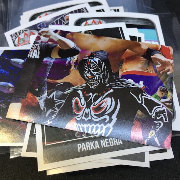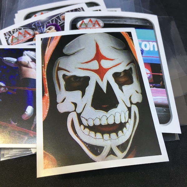 The packs: 2016 and 2017 Panini Lucha Libre AAA Worldwide wrestling stickers (50 packs each -- two box-sixed lots)