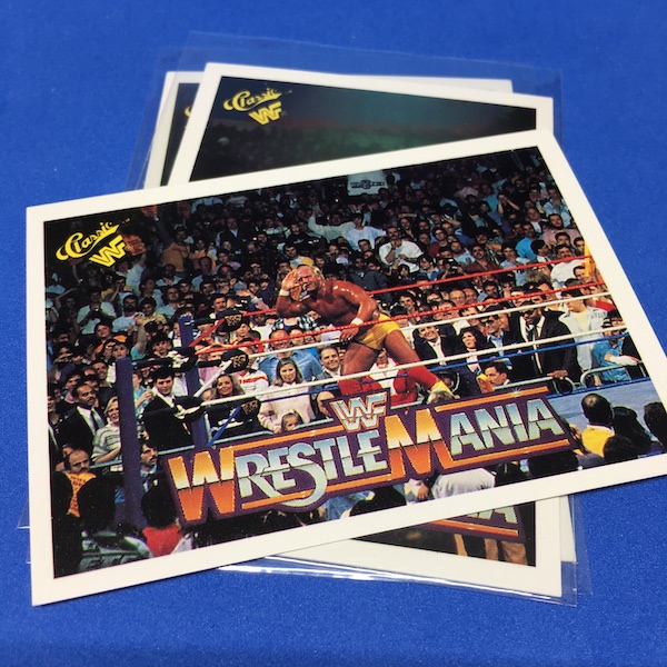 Who Won The Battle? That's a tough call here ... it's definitely not the 1987 Topps set even though that Hogan looked good above (see why in gallery below). There were highlights here but not in the pricier packs ... so I almost don't want to offer up a winner but I will. The Winner: The Classic pack wins as it was dirt cheap (they're not always now) when I found it quite awhile back. The clamshell had come loose and was really beat up but it was all in there. (So ... confession: My pack image with this post is a Photoshopped re-creation.) Nothing here is money but there are some good moments in there from the first five Manias and the monster above from WrestleMania III. Other packs included strong oddities or good names and a couple of bigs get mentioned below. They're big but the rest of what was in there isn't as impressive for the price.