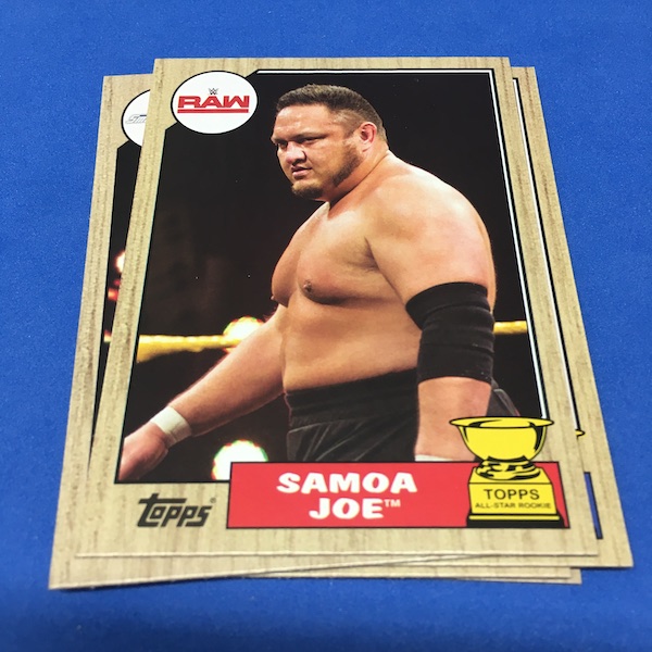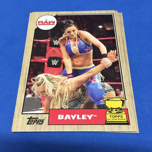 Rookie Cup cards/NXT Future Stars (20) – Asuka, Bobby Roode, Ember Moon, Eric Young, Hideo Itami, Johnny Gargano, Liv Morgan, Tommaso Ciampa, Austin Aries, Bayley, Finn Balor, Samoa Joe, Alexa Bliss, Carmella, Chad Gable, Jason Jordan, Mojo Rawley, Shinsuke Nakamura ... technically some of the NXT names here are Rookie Cards as they are part of the base set -- not inserts -- and the Cup cards are intended to be RC logos for arrivals to main roster over NXT. (Not a lot of actual RCs here, though.)
