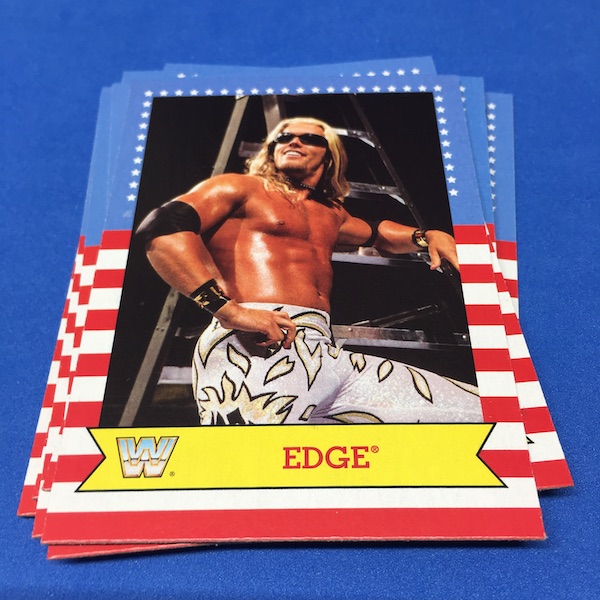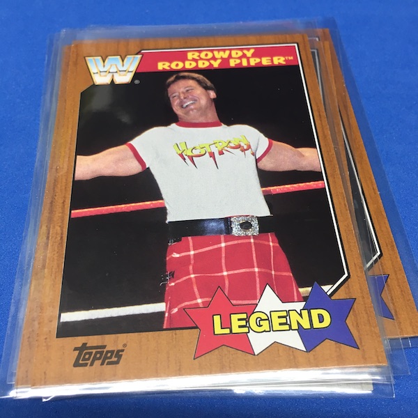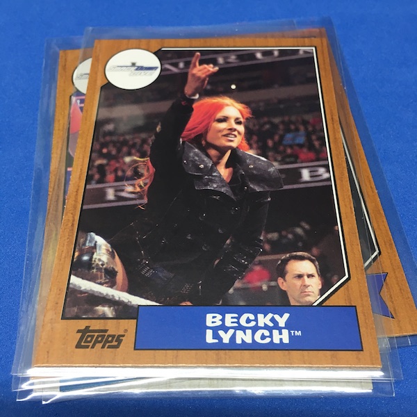 My Take Before I Broke This: I ripped a bunch of retail for this one to build up the ol' collecting ranks on the cheap once stuff dropped in price but hobby boxes never really did until they went poof and they suddenly re-surfaced with premium prices a few years later. Why? I'm assuming the hobby boxes got ripped in a solid, steady volume as they all include one on-card auto and the potential for more showcasing the stars of the present-day WWE as well as throwbacks that help flesh out the Heritage name here quite well. This one meshes the wood-border 1987 Topps MLB design with the stars-and-stripes styled 1987 Topps WWF set and then uses some new creations and subset styles to flesh out the rest. It didn't wow me back then -- I actually think the H sets that came before and after this are better in different ways. I was really hunting for a break like this for today but didn't think it would happen until it simply presented itself out of the blue without a big price tag. (Still more than it was back then but not as big as it might be ... and I don't think these are consistent enough to carry a premium ... but the supply might be low now.) There are some good autos to be found here and color parallels add to the chase, too,