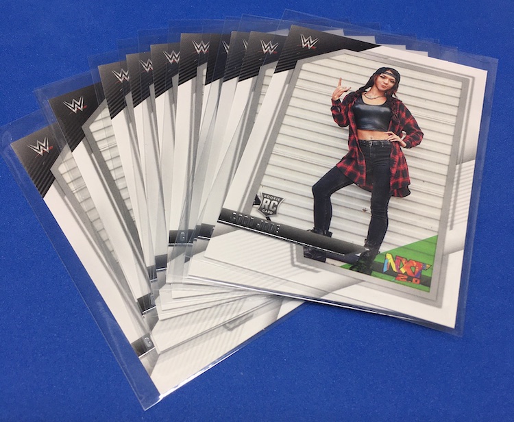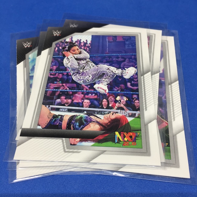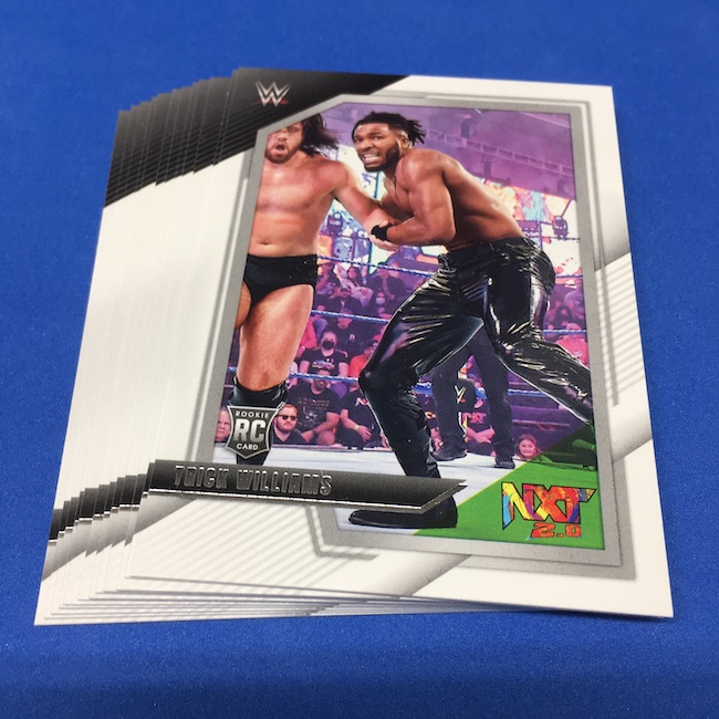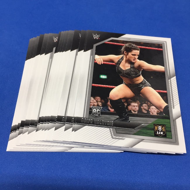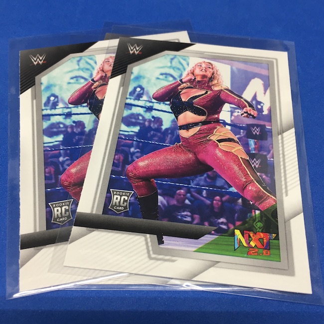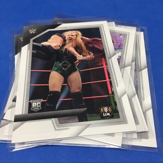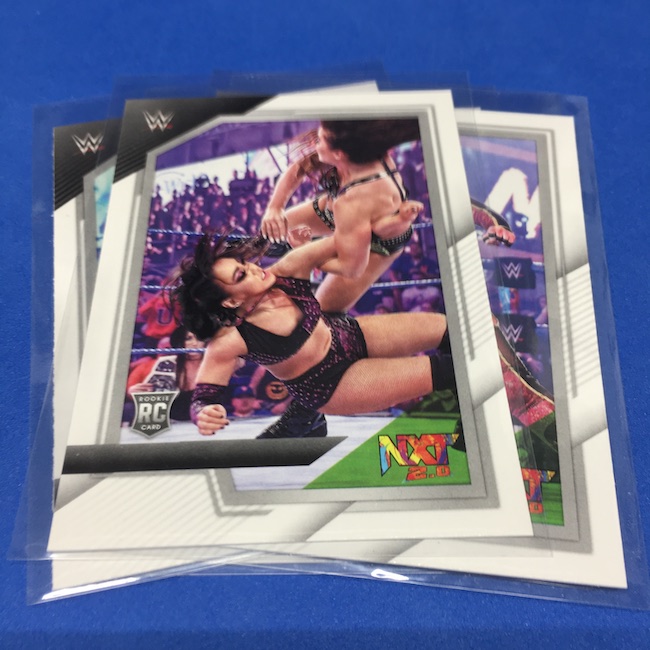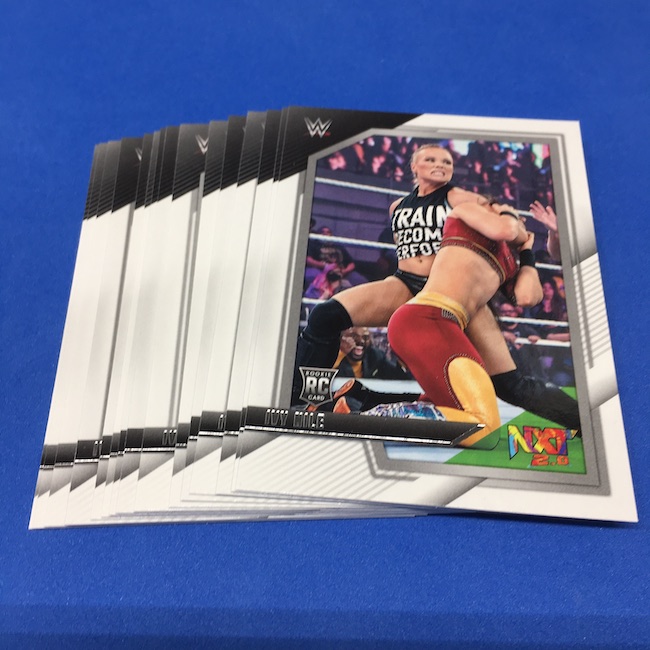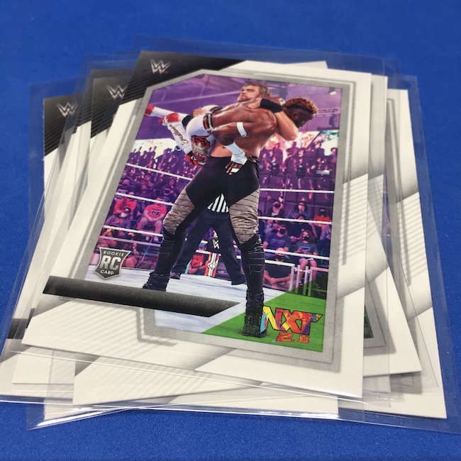 My Take Before I Broke This: This one got dirt cheap around Black Friday and, yes, I bit on a few cases here because the Rookie Card crop is beyond stacked with first cards for an influx of NXT and NXT UK names that hadn't made cardboard thanks to card-maker delays and the flipping of the switch to NXT 2.0. This is a traditional cardboard release and it's one with issues if you're grading (back surfaces and edges can be messy here) but if you're a collector and one who rips on the cheap ... it's a win at cheaper prices for this format. Unlike hobby boxes, which have an auto and a memorabilia card as well as numbered parallels in every box, this format is a little dryer with hits coming more erratically -- I don't know how many should drop here with all of my cases having been different -- and numbered cards only a handful of times per case ... or less. At full price, this one is too risky, despite all the RCs, but at a slasher price this one is fun to me and still has potential. I'll rip more.