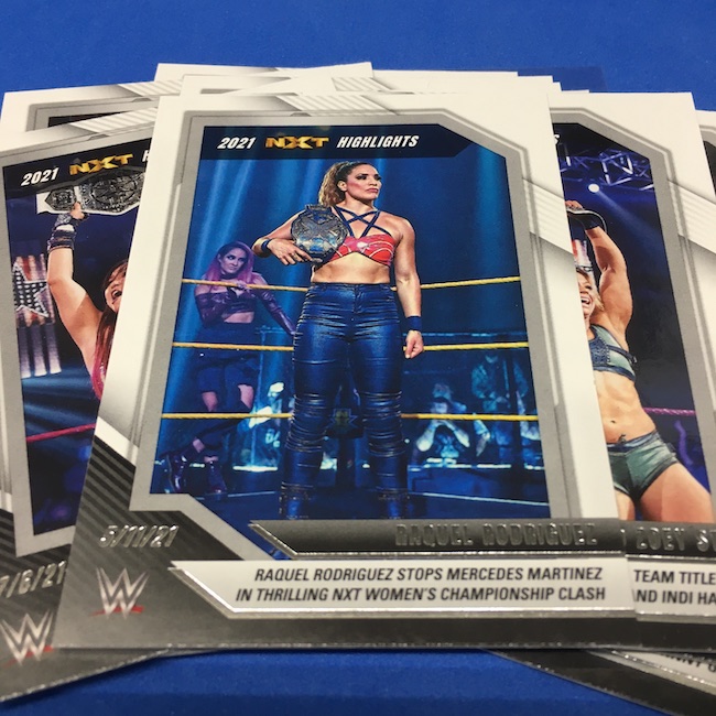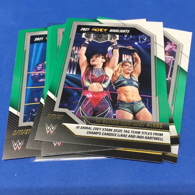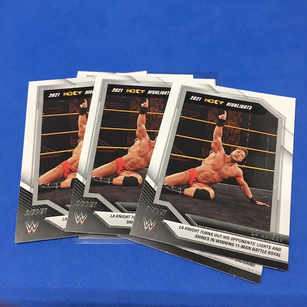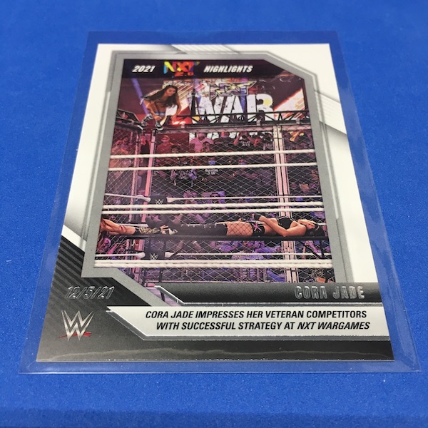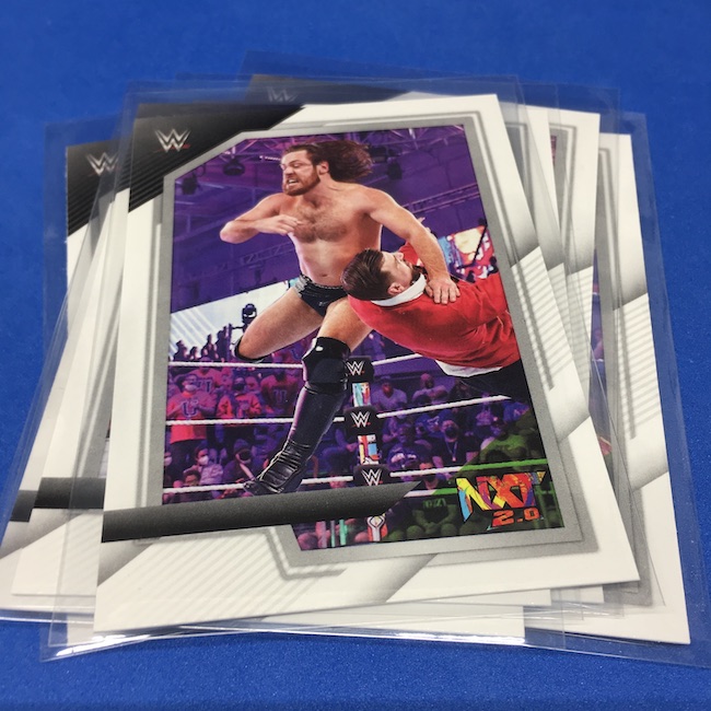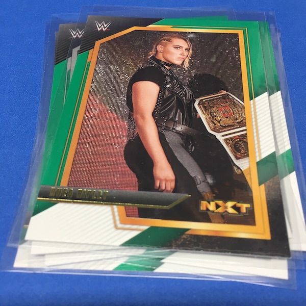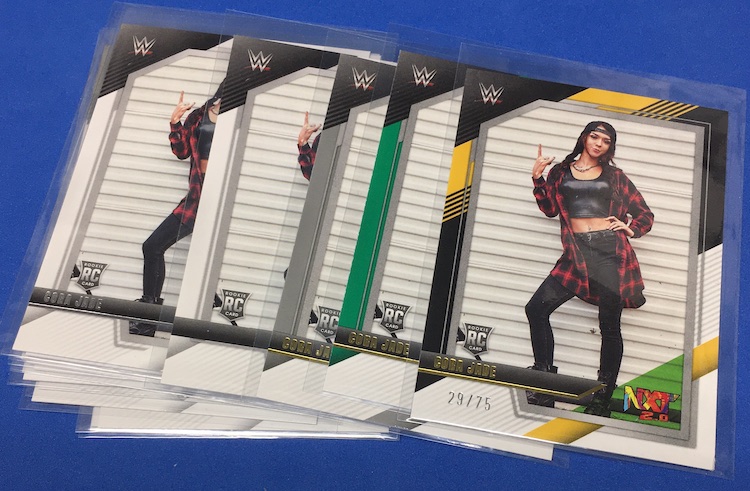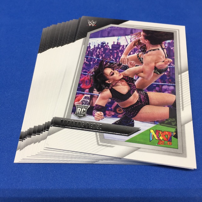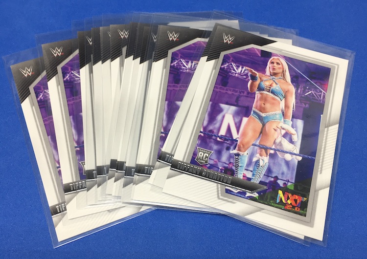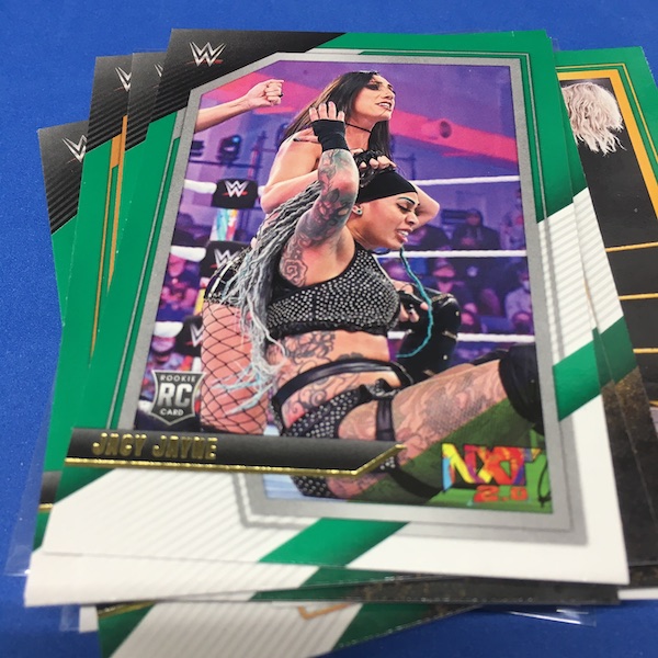 My Take Before I Broke This: This one got dirt cheap around Black Friday and, yes, I bit on a few cases here because the Rookie Card crop is beyond stacked with first cards for an influx of NXT and NXT UK names that hadn't made cardboard thanks to card-maker delays and the flipping of the switch to NXT 2.0. This is a traditional cardboard release and it's one with issues if you're grading (back surfaces and edges can be messy here) but if you're a collector and one who rips on the cheap ... it's a win at cheaper prices for this format. Unlike hobby boxes, which have an auto and a memorabilia card as well as numbered parallels in every box, this format is a little dryer with hits coming more erratically -- I don't know how many should drop here with all of my cases having been different -- and numbered cards only a handful of times per case ... or less. At full price, this one is too risky, despite all the RCs, but at a slasher price this one is fun to me and still has potential. I'll rip more.