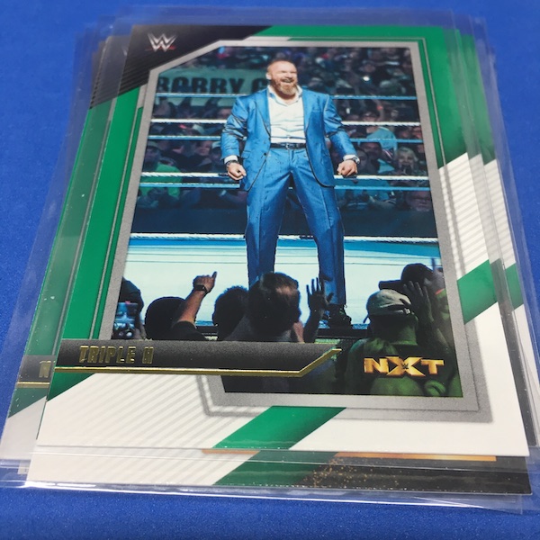 Notables on base cards: Triple H, Rhea Ripley, Bayley, Seth Rollins, Asuka, Kevin Owens, Drew McIntyre, Ricochet, Finn Balor, Mandy Rose, Cameron Grimes, Gigi Dolin, Ilja Dragunov & many others. (Note: A sampling of everything is in the gallery below -- but check other breaks to see more base cards.)