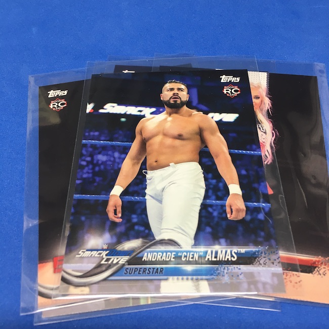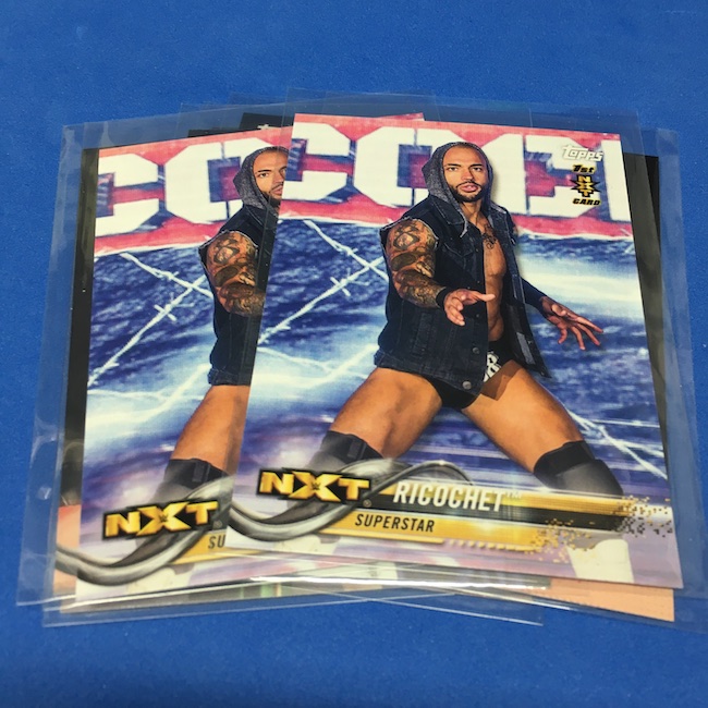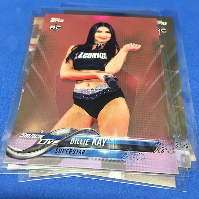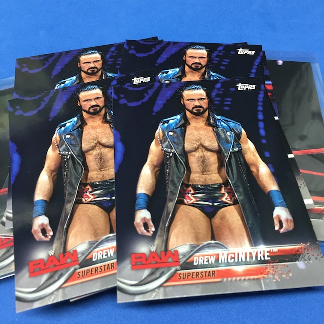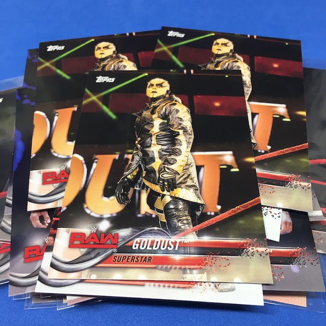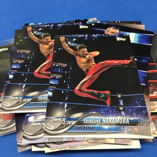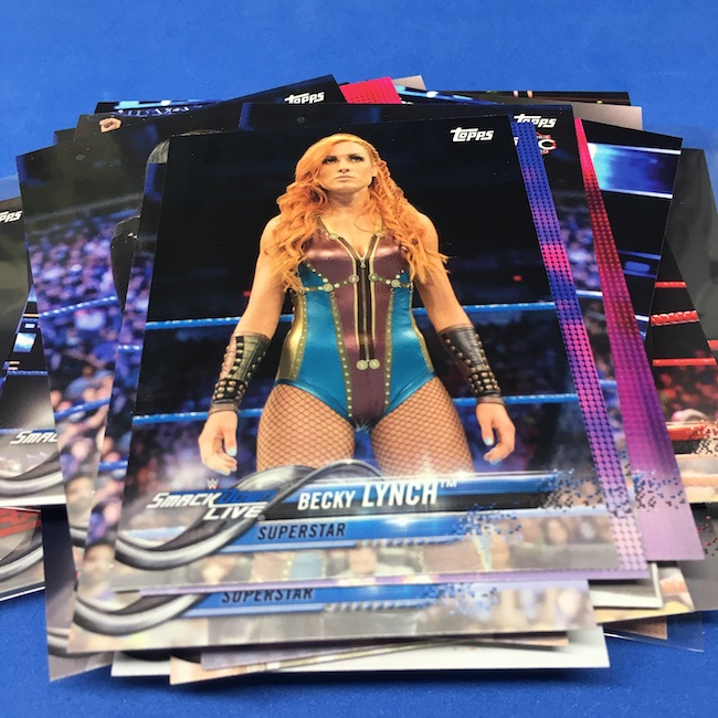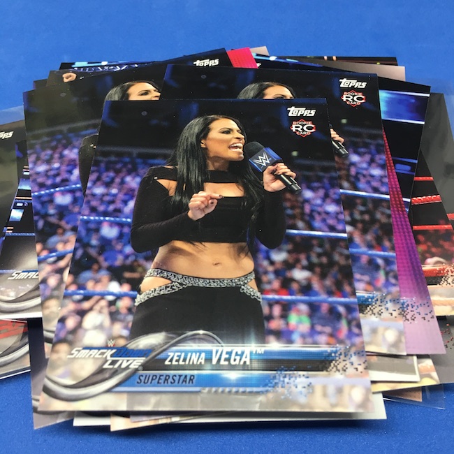 My Take Before I Broke This: This was a safe go-to hobby box for me back in the day -- back when they were about $40 for hobby -- with an autograph every time, a second hit and then plenty of everything else. It's a design that showcases the photographs by getting out of the way and it's got a checklist that is packed with legends, current stars and a number of RCs from both the main roster as well as NXT as those names are in the base set here but not marked as RCs. (They used the logo for Raw or Smackdown cardboard arrivals.) Blasters had been surprisingly still findable for this one -- I grabbed these the instant I saw them at the link up top but now two other options are all that's available (still worth a look). These have a guaranteed hit every time (mostly Relics but long-odds auto Relics are possible) and plenty of Blue parallels that are arguably the nicest of the parallel colors in this release.