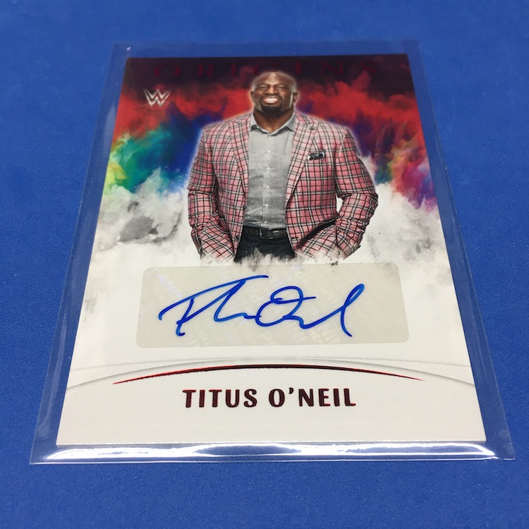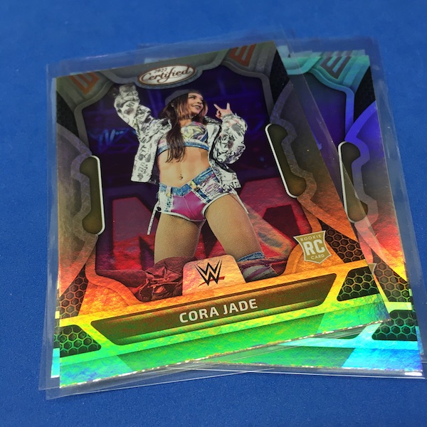 Box/Case Grade: B ... One autograph in a case this year vs. three last year -- I really have no idea what the norm should be at this point even a few years later. Had it delivered more hits along with this slightly rarer Jade, the volume here would have gotten it to a high-B or low-A grade ... since I found this at a cheap price. At regular price, this would have been rough -- that auto is about $5 on a good day, though it is a retail color parallel and he is a former college football (Florida Gators) standout and in a WWE ambassador role now.