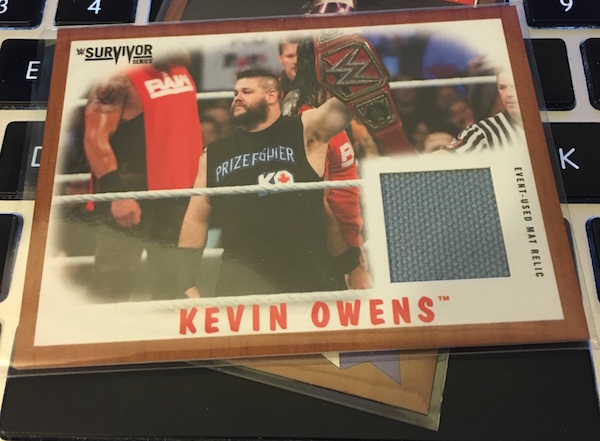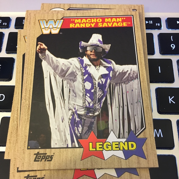 What's Buzz-worthy: This year's edition of Topps Heritage has yet to arrive, so we'll go with the newest in this popular retro-styled line for Hour 2. Why is that? This one uses both the 1987 Topps WWF design that we mentioned last hour as well as the 1987 Topps baseball design all in one place -- but with today's cleaner and crisper printing and cutting. Oh and there are autographs and memorabilia cards, too. ... The Heritage brand is one that combines the stars of today on the designs of yesterday and in WWE that also means the checklist is a blend of the past and present. ... About the only drawback is that the stock does can be chippy on the autographs and parallels, which use rich colorful overlays atop the memorable wood borders. These hobby boxes guarantee an autograph every time and this one delivered very well with a WWE Hall of Famer and a very aesthetically pleasing sig. The Mat Relic of Owens also is a plus compared to other names on that checklist. Heritage has been a big part of the latest Topps run with the WWE license (2005 to today) and this isn't the last you'll see of it today.