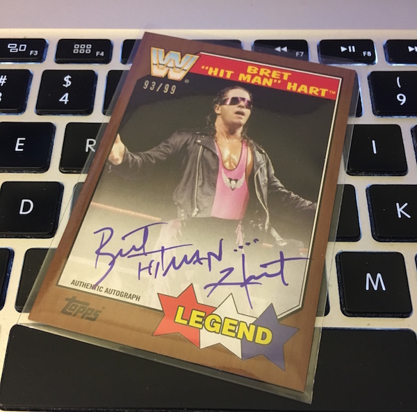 The retro 87 design is awesome and a solid hit with the best there is, the best there was, and the best there ever will be Bret the Hitman Hart auto!