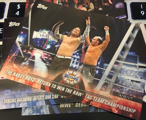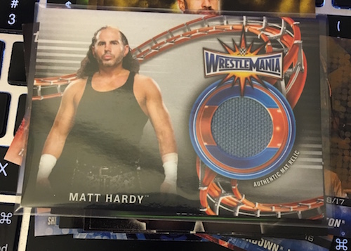 What's Buzz-worthy: Maybe I'm a bit broken after ripping so many packs, but speaking as the consumer of collectable entities, finding a Matt Hardy hit card seems appropriate as he and his brother returned just one year ago at WrestleMania. He's brought his eccentric broken/woken persona to the masses since then, too, potentially giving cards like this one a little more interest than in the past. (Either way, he's had a Hall of Fame caliber career with a ton of past Mania highlights.) This is, so far, the only 2018 WWE product available, and it's one that delivers at least one and often two on-card autographs per hobby box -- one Relic per blaster box at retail. The hits are the biggest highlights in this one, though this highlights-based brand is one of the most-improved releases of the last couple years vs. those that came before them. I've shredded a lot of this release -- hobby or retail -- but I included this one as we're still waiting for the standard 2018 Topps WWE set to arrive early next month and then Heritage, Undisputed, likely Series 2 and another women's set likely to come this year. Blaster boxes for last year have a little more potential than the recent past as there are autographed Relics (typically /10) worked into the mix, giving you a shot at a little more if you're ripping on a budget. Hobby is still probably your best bet with this particular brand. Poke around in the Buzz Breaks or pro wrestling categories here to see more breaks of this one and other brands not included in today's #BuzzMania.